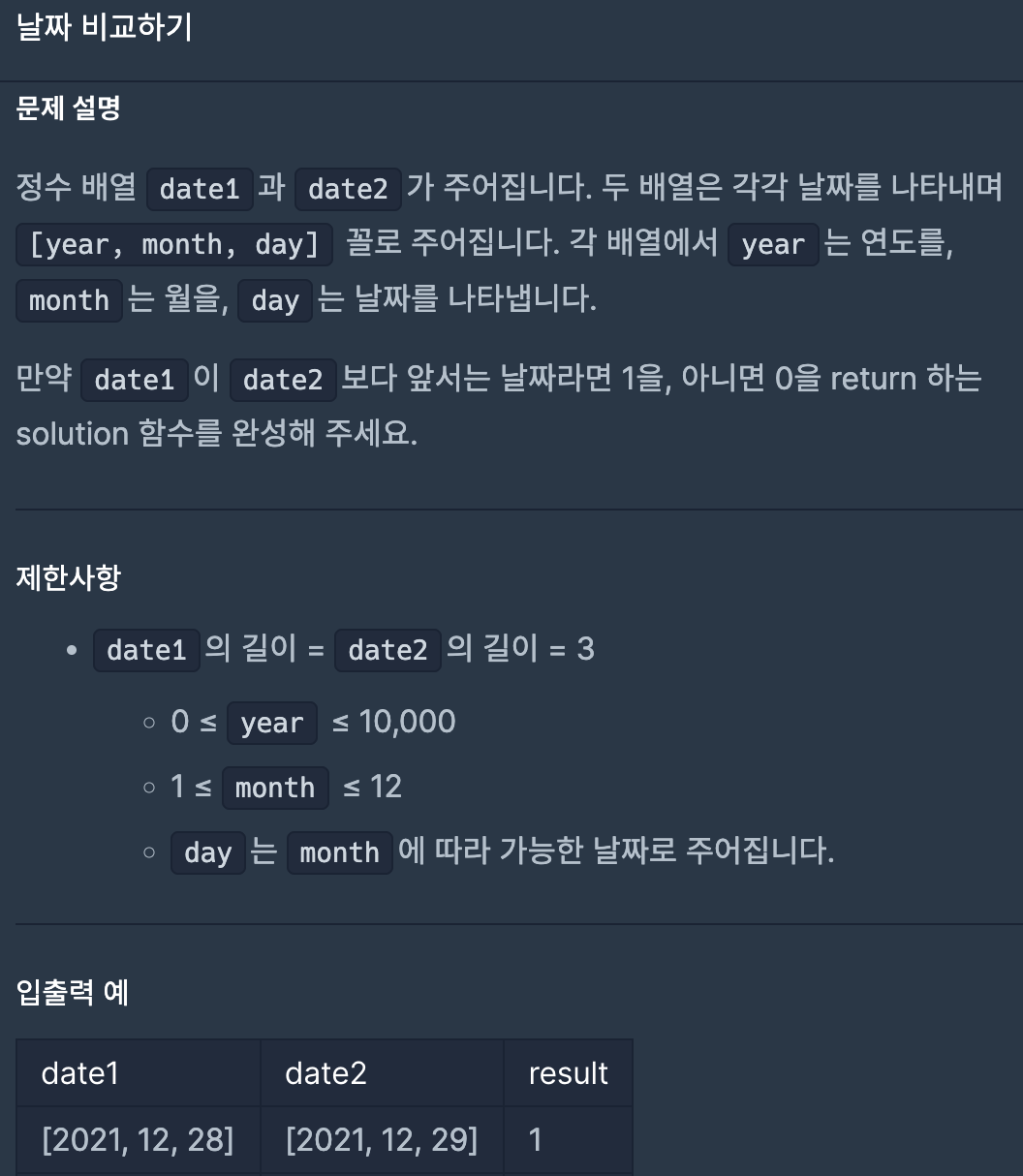 [프로그래머스] 날짜 비교하기 반례 테스트케이스 / 배열 부등호 본문